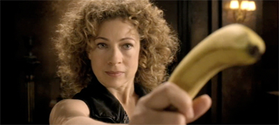 (It also gives us a nice banana gag, which feels like another solid connection between River and Captain Jack. I can’t help but wonder if Moffat had some similar reveal in mind for the disgraced Temporal Agent. After all, Moffat created the character with a hole in his history that was never properly filled. And then there’s the rake of other similarities between River Song and Jack, which are too tangential to really delve into here. Still, it’s interesting to note.)