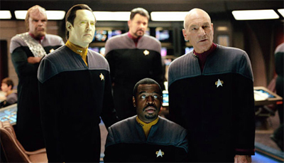 Perhaps it is too focused on such things. The first time we meet the crew this time around, we are at the long-overdue wedding between Troi and Riker, who have a long romantic history. In his Best Man Speech, which seems to exist mostly to allow Patrick Stewart to tell bad jokes and dump exposition on the audience, Picard repeatedly stresses that the group have been together for “fifteen years.” It’s shoe-horned in there, lending the awkward scene an uncomfortable self-congratulatory air. Don’t get me wrong, I love the ensemble, and the wonderful group dynamic is the only thing preventing the sequence from collapsing under its own weight, but I think the best tribute to the group’s time together is to celebrate it through continuing. I’m not sticking in a two-hour movie to remind me of Guinan or Wesley – I can watch the old episodes for that.