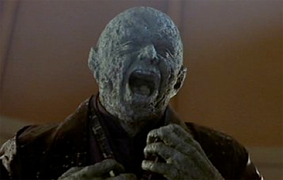 I’m not even sure what the character’s motivations are. Does he want to kill Picard to assert his own identity? That’s one idea proposed, but never developed. Shinzon’s character seems incredibly prone to change, which is in marked contrast to the very core of Picard’s character. He claims to love the Remans as brothers, seeking their freedom from Romulan slavery, while he falls into the old cliché of executing those henchmen who failed him. Why does he want to destroy the Federation? There are any number of possibilities that come to mind – does he need to galvinise Romulan support for his rule with a successful war? does he want to hurt Picard? does it a dark reflection of Picard’s arrogance? does it contrast with Picard’s quest to discover new life outside Earth, Shinzon’s plot to destroy all life on Earth? – but no consistent ones are suggested or hinted at.
