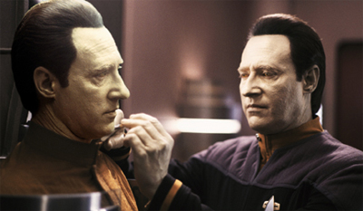 Instead, Shinzon seems like a cookie-cutter psychotic world-conquering villain. There’s nothing wrong with that, but it removes a lot of the appeal of having Picard square off against a younger version of himself, “very much in need of seasoning.” This isn’t a man with Picard’s occasional obsessive tendencies or moral superiority left unchecked, this is a man who uses (telepathic) rape as a weapon of war and who contemplates genocide with no provocation whatsoever. Shinzon insists that he is a dark mirror to Picard, but the older of the two protests, “I am incapable of such an act.” And we believe him – it means there’s no emotional torque between Picard and Shinzon, because they look and act completely different.