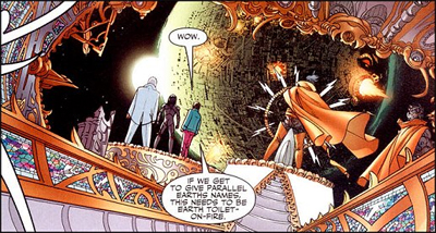 Indeed, Snow seems to come remarkably close to grasping his nature as a fictitious comic book character. “There’s a theory that the universe’s underpinning is information, not matter and energy,” Doctor Kwelo suggests at one point. “That means that the universe is two dimensional.” We’re presented with a ship powered by this information – and while the ship stationary, the story moves around it, literally powered by plot. Extrapolating from that, Elijah observes, “In the long run, we are three-dimensional side-effects of a two-dimensional universe existing in a multidimensional stack.” In sort, these are two-dimensional comic book panels given depth by the reader’s own perception. Nice stuff.
