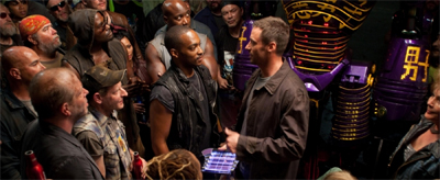 And then there’s Charlie. In a film like this, forgetting your kid was at school or missing a birthday party is the kind of situation that denotes a character is a bad parent. Charlie sells his son, which leads to my favourite exchange of the whole movie, and one delivered with aplomb by Jackman and Goyo: