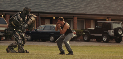However, it’s the two leads who carry the film, and who are largely responsible for the movie working as well as it does. Dakota Goyo is great as Charlie’s son Max, attempting to reconcile with a father who can’t even remember his age. It helps that Max is the best written character in the film, never seeming like a cliché or Hollywood’s idea of what a kid should act like. He’s not “radical” or “awesome”, but he’s a character who needs a lot of growth. He loves his robot, but he’s also careless and arrogant about it. He’s smart, but he still needs his father and still has a lot to learn about the world. There’s one lovely sequence where Max stays up all night, with cans of Dr. Pepper decorated around the place in the same way his father leaves beer bottles.