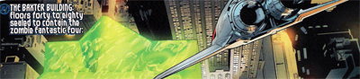 Reed here describes the accident and his failure to cure Ben as “the only two failures I’ve ever known.” Indeed, Ben somewhat resentfully remarks that Reed has been “too busy playing superhero” to help Ben. It’s Reed’s arrogance which gets him sent into the zombie universe and which brings the zombies back with him – all because he insisted on working in secret without anyone’s knowledge or consent. To Millar, however, while these do represent serious flaws, they are not fatal ones. Reed manages to fix everything that he has broken – he sacrifices himself to Doom to save Johnny, banishes the zombies home to their dimension and even figures out how to save Ben in President Thor (although Ben promptly stops him). Indeed, the end of Millar’s run confirms that the characters are superheroes – as a newspaper affirms that they saved New York. The point seems to be that Millar isn’t only effective at deconstructing heroes, but putting them back together as well.