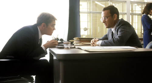 It’s a story the deals fairly directly with absent fathers, that old Spielberg chestnut, offering a rather mature reflection on them, and offering an exploration of how these things affect the children. Both lead characters, Frank Abignale and the fictional Carl Hanratty, do have some series father-related issues. Frank has watched his father become a failure, a man who has exhausted all his charm and confidence tricks, and allowed himself to become too tied down, climaxing in the collapse of his marriage – an incident that affects his son so much that young Frank runs away and never looks back. Hanratty himself is a failed father, who barely gets to see his daughter at weekends, his monomaniac fixation on Frank costing him his family life.