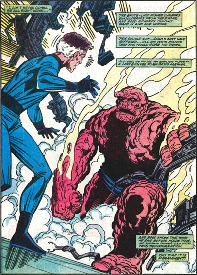 However, there are other problems. As smooth and as interesting as his character arcs for Susan, Doom and Galactus might be, I do feel a bit frustrated with his work on Ben. Of course, it seems mandatory for every writer to have a “cure Ben Grimm” storyline,but it feels kinda pointless for Byrne to change the Thing’s appearance and state that he is beyond the possibility of cure, only to completely reverse that through Franklin’s convenient mutant powers a few chapters later. It seems like a pointless little thread – particularly frustrating because I suspect there was potential there.