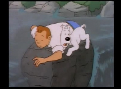 I have to admit, I was curious about how the animated series would handle some of the more political material Hergé inserted into his work. I admired the way that Cigars of the Pharaoh handled international drug smuggling, but I suspected that broad political satire set in a banana republic might catch some viewers completely off guard. And, to be honest, there’s a lot of other stuff in Hergé’s The Broken Ear that makes it one of the tougher stories to adapt as a cartoon adventure. It’s very close to farce, and while the cartoon acknowledges that this business is a little sillier than usual, it never feels like the episode fully embraces the story it’s trying to tell, instead settling for a fairly generic run-around featuring characters and locales from the origin story.