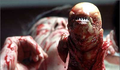 After all, the adult creature is modelled on an image H.R. Giger has described as “the embodiment of the fear of rape.” The facehugger looks like the unholy union of a penis and a vagina. The chestburster looks like an erection with teeth. The creature has been known to kill be penetrating its victim with the phallic-like appendage that extends from its mouth (which also, naturally, has teeth). Hell you could even compare the skin on the floor of the hold with a discarded condom.