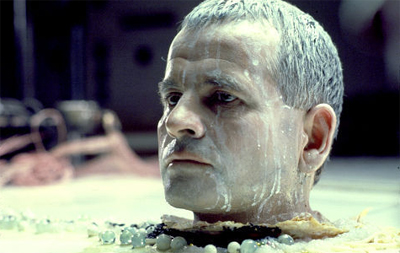 Still, it’s a horror film, and that repression finds itself expressed in primarily sexual terms. As I noted above, both Ripley and Lambert tend to downplay their femininity. Perhaps the alien represents a subconscious response to that strange lack of intimacy. After all, the creature in Alien 3 took on the attributes of its host – it was modeled on a dog, right down to gnawing on the bones of its victims. It’s quite possible that the creature here took on subconscious attributes of Kane – his own suppressed and warped desires.