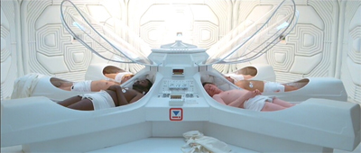 There’s a “dirty” and “unnatural” alien femininity to all this, behind all the masculine imagery – the phallus atop the creature’s head. We see chambers of eggs being farmed mechanically, we witness a parasitic relationship to men as a means of reproduction, and we’re treated to a “birth” that destroys the parent. All this feels like a sharp contrast to the more comfortable femininity we see on the Nostromo itself. The two clean parts of the Nostromo are the pod chamber, where the crew are stored in sleeping chambers that look almost like eggs to be gently and gracefully awoken, and Mother’s control room, which is almost like a womb.