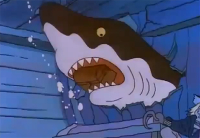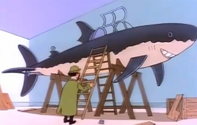 That said, I can see why Red Rackham’s Treasure might be difficult to adapt. In fact, this animated series only gave the story a half-an-hour to unfold, while most of Tintin’s exploits get the deluxe two-part treatment. Red Rackham’s Treasurefeels consciously odd in that there are no villains. There’s the tight core cast, and the pursuit of mysterious treasure. There’s no sabotage, there’s no conspiracy, there’s no competition. The escape of the Bird brothers from the previous story is mentioned, but only in passing – it’s a plot device to get Thomson and Thompson along. Indeed, a rogue shark attack is perhaps the most exciting plot development, and it’s dealt with fairly quickly and efficiently.