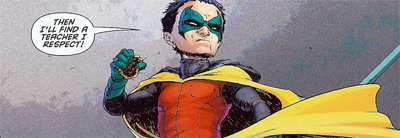 For some reason, Dick just works better. Perhaps it’s the fact that “the Boy Wonder” has always seemed a ridiculously campy idea, jumping around in bright-colour short-shorts – Robin’s arrival on-screen in Joel Schumacher’s Batman Forever marked the moment the franchise went from gothic adventure to neon camp, and the character has not featured at all in the Dark Knight trilogy (nor is he likely to). Somehow putting a man in a giant bat costume can be made even more ridiculous by giving him a teenage sidekick in primary colours. As such Robin – and, despite his career of Nightwing, Dick Grayson will always be most iconic as Robin – serves as a focal point for the weird neon vibe and camp of the franchise. Grant Morrison is just writing a book featuring two of them.