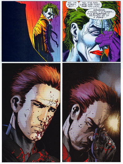 Anyway, given how, like with Batman, the Joker is the only one left standing at the end of the run after all the pretenders have been left in the dust (in fact, just like Batman in Batman R.I.P., the Joker survived by creating a new persona for himself) – implying that there’s something fundamental about the character which has helped him to survive and endure while those around him fall and crumble. The Joker is the Joker. He has always been the Joker, and he always will be (no matter how often you shoot him in the head or run him off a bridge in a Batmobile). The Joker is eternal.