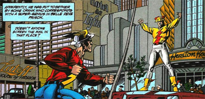 Indeed, Morrison’s and Millar’s run pokes a bit of fun at the genre conventions of “Dark Age” of comic books (which is a term even Wally himself uses during the above conversation), but never in a way that’s quite as on-the-nose as some of the heavier-handed moments during Morrison’s Justice League stories. Remarking on the expectations of modern audiences, Mirror Master comments, “We’re second-generation superpeople. We’re supposed to have a bad attitude.” Though, given that he targets the Flash’s girlfriend to trap in a backwards world rather than killing her or anything else more sinister, he seems almost tame by the standards of the time (this is when Green Lantern’s enemies were shoving his girlfriends into fridges, as a frame of reference).