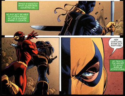 Before we dig too deeply into the book itself, it’s worth noting that Brad Meltzer is a really good comic writer, from a technical standpoint. He’s very clearly a comic book fan, rather than a blow-in, and he obviously knows his geeky trivia and nerdy minutiea, but he’s also careful to explain everything as he goes along. So, while he uses obscure characters like Bolt, he tries to provide a meaningful context, often giving a panel to introduce two characters and (very briefly) explain their relationship. In an era where comic books are increasingly insular, there’s a sense that Meltzer’s Identity Crisis is highly accessible, despite pulling from years of continuity (to the point where several panels are literally copied from past works). It’s sad that this sort of care and craft merits this level of praise, but it’s so rare that I feel it’s worth pointing out.