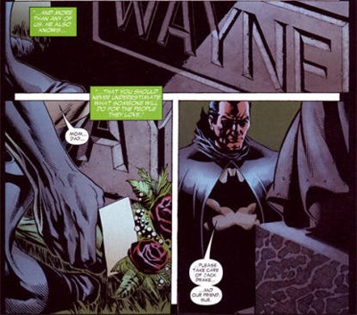 I find Meltzer’s handling of Batman interesting in the context of the wider DC Universe. The character and his world seem relatively isolated from the rest of the characters. When Jack Drake dies, in sharp contrast to Sue Dibny’s funeral, Ollie notes, “Most of us aren’t invited.” Even the villains seem to draw a distinction between Gotham and the rest of the fictional universe. Explaining why some villains aren’t part of the union that they’ve formed, our narrator explains, “Luthor and Grodd do it for power. Cheetah and Sivana do it for kicks. And the Bat-Villains, well… they’re just fried to begin with.”