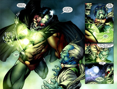 “What an unbelievable jackass…!” Kyle remarks of Sinestro, after telling the villain that his daughter has been kidnapped. The Weaponer holds his daughter hostage, and yet Sinestro can only remark, “He seeks to rob me of my dignity.” At the same time, Bedard understands what makes Sinestro so dangerous is his capacity to contaminate others with his ideas and philosophies, as the embodiment of fascism or authoritarianism within the DC Universe – perhaps coming to challenge Darkseid as its champion, if only because his portrayal is more nuanced. “Sinestro corrupts everything and everyone he touches,” his daughter observes, and she’s right – he has shaped the evolution of the Green Lantern Corps even as its deadliest enemy.