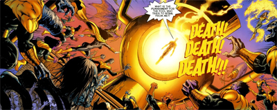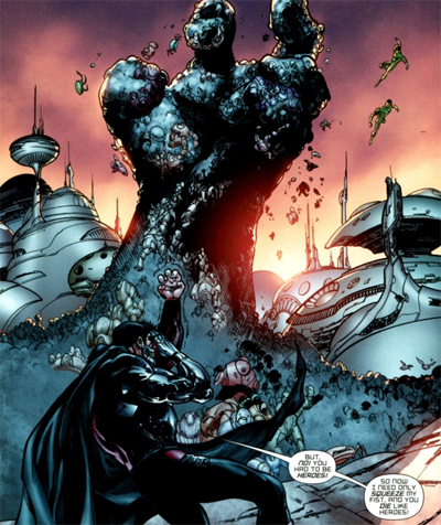 It doesn’t help that Bedard seems to have a bit of a tin-ear for dialogue here. Addressing Nekron, the Cyborg Superman declares, “You there! Angel of Death! Put an end to my suffering! I’m talking to you!!” It seems like the Cyborg Superman has suddenly become an inner-city jerk. Bedard even struggles to make the character’s back story seem sympathetic, which is something of a feat given it involves a dead family and a suicidal character who can never actually die. I think a lot of it has to do with the fact that Bedard writes the character with so many clichés that you feel he should have a twirly moustache.