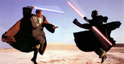 Aside from the acting, there’s also a problem with how Lucas structures his film, most obviously in the grand and epic finalé of the film. There are four climaxes happening all at once: (a.) the Gungans against the droids, (b.) Padme’s assault on the palace, (c.) Anakin in space, and (d.) Obi-Wan and Qui-Gon against Darth Maul. To be honest, it’s not impossible to manage that many threads at once, but Lucas doesn’t seem to have the storytelling ability to keep all those balls in the air. You can tell because even John Williams’ epic scroe seems to lose step two or three times as we transition from one thread to another.