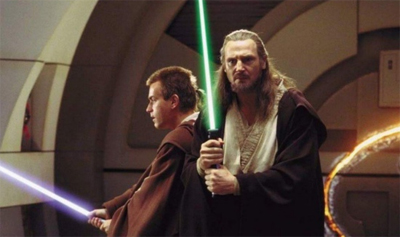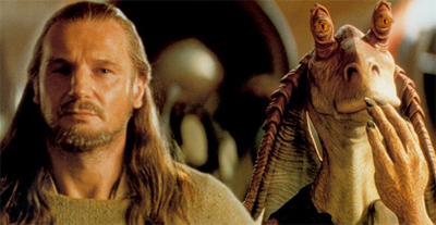 The problem is that Jar-Jar’s incredibly silly antics have nothing to offset them. The interplay between C-3PO and R2-D2 is grand because it happens in the background, with main characters driving the story forward and engaging the audience on their own terms. Jar-Jar becomes irritating because he’s almost the most developed character in the film. Sure, there’s Qui-Gon, but his character has his own problems we’ll address in a minute. There’s nobody with a central arc as strong as Luke’s character development, or even Han’s growth into a hero. Padmé fills the role of Leia, reprimanding the feckless rogue (in this case Qui-Gon), but she’s not interesting because there’s no chemistry between them (obviously because he’s several times her age).