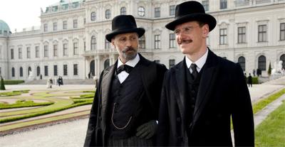 Early on Freud suggests that his theories will come under fire because of his own Jewish heritage. Meeting with Jung’s patient (and mistress) Sabrina Spielrein, he suggests that the two should bond as Jews against the very Aryan Jung. In fact, it’s telling that Freud’s primary objection to Jung is that the latter is “playing God”and that he takes exception to the introduction of religion to Spielrein’s theories. The closing text explores the fates of the primary characters after the film comes to an end, and it seems that Jung is the only one to escape the war unscathed, with both Freud and Spielrein persecuted for their religious beliefs.