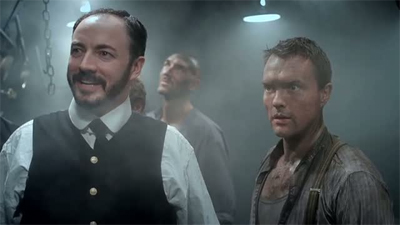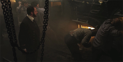 That said, the two formats seem to be at odds with one another. Liam Cunningham has a great voice, but the interludes tend to yank the audience out of the narrative, and it takes us a while to ease back in. There’s no reason, for example, why the necessary dialogue couldn’t have been eased into the narrative – there’s a wonderfully effective scene, for example, where the designer of the ship explains (using the blueprints) exactly how he can claim the ship is “unsinkable.” There’s no reason the other points couldn’t have been worked into the movie – especially using the framing device of the inquiry.