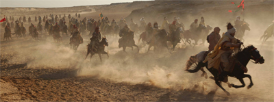 Of course, there’s a reason that the editing seems to focus on Banderas and Strong, and it’s not just because they are the most fun to watch. It’s the middle section of the film, when the movie shifts focus away from the pair to the character of Prince Auda, that the problems begin to show. We’re asked to accept this character’s transformation from a kingdom’s “Chief Librarian” to fully-blown Mahdi with no real development. It seems that he immediately gives up on the prospect of peaceful resolution after spending ten minutes in the company of his biological father.