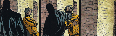 Frank seems okay with the idea of a pimp working a corner. He accepts it will happen. He doesn’t kill on sight. Apparently prostituting women is something he can live with, to a point. However, as he sits with Microchip, he tells the story of his first act of violence following the loss of his family. He nearly beat a neighbour to death for leaving his wife – that’s a perfectly legal thing for somebody to do (and, if they were both unhappy, surely staying together would be more wrong?), but Frank can’t hold himself back. Somehow, this neighbour provoked Frank’s wraith more than a pimp prostituting over-age girls would. Frank’s justification? “He knew in his heart it was wrong. But it was what he wanted. So he went ahead and did it, and hoped everything would work out all right. That’s why he deserved to be punished.”