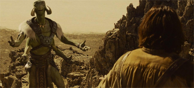 There are plotholes to be found everywhere. Despite being incredibly strong and able to jump great distances, Carter’s abilities seem to be as strong as the plot demands. Sometimes he can leap entire cities, other times a small chain holds him in place. Sometimes he can kill a man with a single blow, and other he can’t fight off a weakened and malnourished attacker. His ability to adapt to an alien world (controlling his strength, flying an alien craft) also tend to come and go depending on how the particular scene needs to play out. But there’s a cheesy charm to all this. After all, it’s hard to imagine any science-fiction or fantasy epics that don’t feature some weak links in their internal logic.