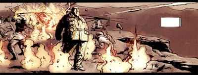 By all accounts, Man of Stone should be gripping reading. After all, the central thesis of Ennis’ writings on Frank Castle is that the man is a by-product of the Vietnam War. Taking him out of his comfort zone and throwing him into the middle of the Afghanistan Conflict should make for compelling stuff. What happens when Frank ends up in a theatre of war too similar to his old stomping grounds for comfort. The answer, it appears, is next to nothing. Ennis portrays Afghanistan as a large empty wasteland, where nobody but Punisher MAX supporting cast members seem to wander around, randomly bumping into one another and meditating on life, the universe and stuff.