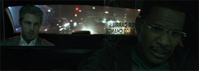 “First time in L.A.?” Max asks his fare. Vincent replies, “No. Tell you the truth, whenever I’m here I can’t wait to leave. It’s too sprawled out, disconnected. You know? That’s me.” He asks Max, “You like it?” Max doesn’t answer one way or the other, and sort of fobs the question off, “It’s my home.” Vincent continues with his commentary on the city, “17 million people. This is got to be the fifth biggest economy in the world and nobody knows each other. I read about this guy who gets on the MTA here, dies. Six hours he’s riding the subway before anybody notices his corpse doing laps around L.A., people on and off sitting next to him. Nobody notices.”