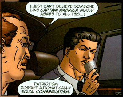 But that’s really the problem with everything here. All the angst goes up to eleven. The characters are like children, unable to cope in any reasonable way with the real world. It’s hard not to hear a note of exasperation in Iron Man’s voice as Captain America mopes around, “Dear God…!” He sounds like he’s running a creche. There’s something ridiculously over-wrought about the way that he advises Captain America, “So if you walk out that door… you’re risking everything we’ve built here.” (He might as well have gone on, “And don’t you dare come back, Steve Rogers, you hear?”)