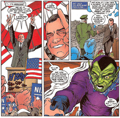 Hell, he even uses it to re-write Hank Pym’s convoluted mental history (which has been exaggerated to the point where it’s his defining characteristic). Although this meddling didn’t cause his breakdown, It did deepen and worsen it. “No one caused your breakdowns, Henry Pym,” the captured shapeshifter assures him. “We just lied to you. It just made things all the more convincing to back them up with a lie you wanted to believe.”