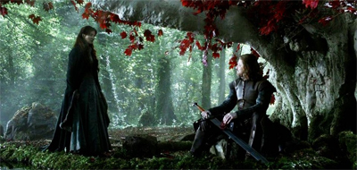 Here, as Ned, Sean Bean seems to have been cast in a similar role. Ned is decent and honourable and compassionate, much like Aragorn. Other characters comment on how he would make a fitting ruler. However, the world itself is so skewed that such virtues of characters do not assure Ned a happy ending. Had Ned been a character in The Lord of the Rings, he would have made a decent companion. Here, as the conspiracies in the royal court unspool around him, he can’t help but seem outdated and out-of-touch. Ned simply isn’t quick or astute enough to manage the Game of Thrones. It illustrates how well G.R.R. Martin picks apart the conventional fantasy clichés.