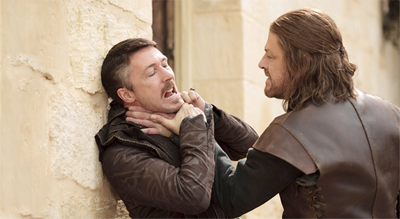 On discovering that Catelyn was to marry Ned, Baelish seemed to consider himself the young upstart fighting to save her from an arranged marriage. “So I challenged him to a duel,” he explains. “I mean, why not—I’d read all the stories. The little hero always beats the big villain in all the stories. In the end, she wouldn’t even let him kill me.” He explains, “Do you know what I learned, losing that duel? I learned that I’ll never win, not that way. That’s their game. Their rules. I’m not going to fight them. I’m going to fuck them. That’s what I know.”