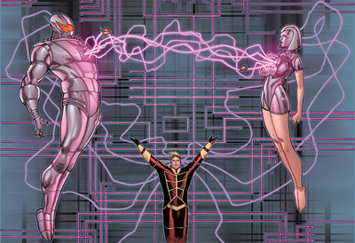 In contrast, Slott doesn’t coopt big names for his team. Stature suggests that Hank considers his team “D-Listers”, and she’s probably not far wrong. Instead, Slott focuses on gathering up the classic smaller-name Avengers forsaken by the franchise in the wake of Avengers Disassembled. The new Vision is on the team. Quicksilver joins, pursuing what he believes to be his sister. Hank Pym, the least successful founding Avenger, manages the team. Hell, even Jarvis is head-hunted for the team by Hercules and Amadeus Cho. If you had any doubt about the classical old-school vibe that Slott was going for, they should be dismissed by the large role played by the team’s faithful butler. Asked by Jarvis why they’d recruit him, Cho responds, “Like Herc said, I did the math. Studied the Avengers dynamic. And you’re the constant.”