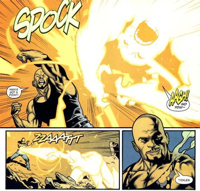 Still, in fairness to Bendis, he seems to acknowledge the fanboy ire he has provoked. After all, making Norman Osborn your mouth piece suggests a wry sense of humour. Last time, I suggested that the Hood, Bendis’ central villain, could be seen as a parody of the stereotypical whiny and entitled fan, with a disproportionate sense of entitlement from comic books. Here, however, Hood is cast as Bendis, with the other members of the syndicate representing the comic-buying audience, or at least the more vocal fans amongst them.