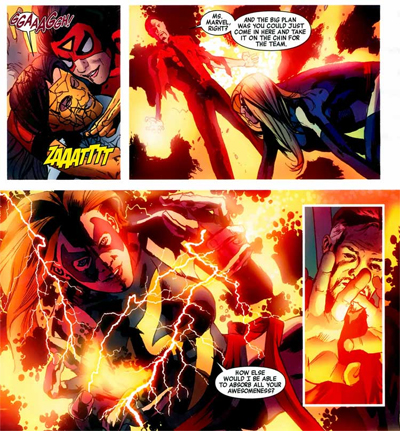 Villains are villains. They’ll always lose because they don’t plan ahead. Wrecker has a crucial thought in the middle of an incredibly brutal and pointless confrontation, suggesting, “Let’s think about this. If Harrow’s got enough juice to take out the Sentry… Maybe we don’t have to go all the way through with this. Maybe we can just –“ Juggernaut cuts him off by correctly observing, “Too late now.” Later on, Miss Marvel reprimands Osborn for his impatience and the poor tactic decisions that it leads him to make. “You don’t leave your team in the middle of a battle and go off half-cocked,” she insists. “You’d know that if you knew anything. And that’s why you’ll fail. And you’re crazy.”
