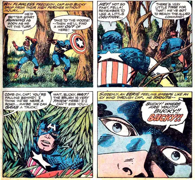 Even outside of that central problem, Kirby seems to recognise the factors that drive Steve Rogers. In Captain America’s Bicentennial Battles, he’s sharp enough to explore the fact that Steve still feels a huge sense of loss over the death of Bucky, his kid sidekick. “Then this Bucky is the void in your existence?” Mister Buda asks, and it’s very perceptive for Kirby to point out just how deep those scars run in Steve’s psyche.