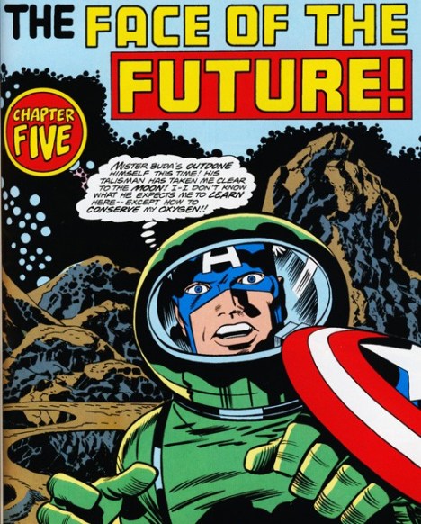 Of course, focusing on oddities like this ignores the tremendous imagination at work. So what if it’s a little silly at times? Only Kirby’s imagination could produce images like a mental institution magically transported to a sinister alternate dimension, or the absurdity of preserving Hitler’s brain in a cyborg body, or sending Captain America through time to learn the true meaning of the United States of America. It is gleefully over-the-top and surreal, but Kirby has a rare zeal in doing it – you want to go along for the ride, and take that next crazy sharp turn in the tale.
