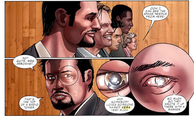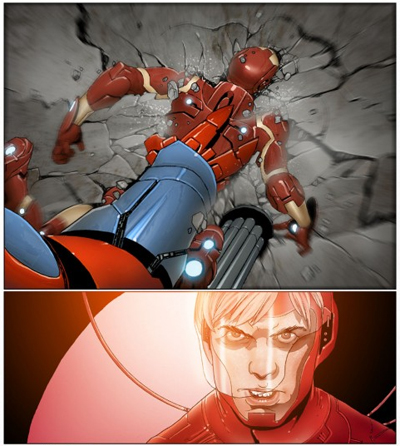 Fraction seems to concede that the character’s arc has damaged him, writing the hero past the point where he’s acceptable as a superhero, but seems to also acknowledge that it’s these attributes that make Tony who he is. Tony can’t pull a sharp u-turn from his actions and beliefs, because they are an essential part of the character’s appeal. All Fraction can do is to pull him back from the edge, by literally rebooting him, and acknowledging his flaws.