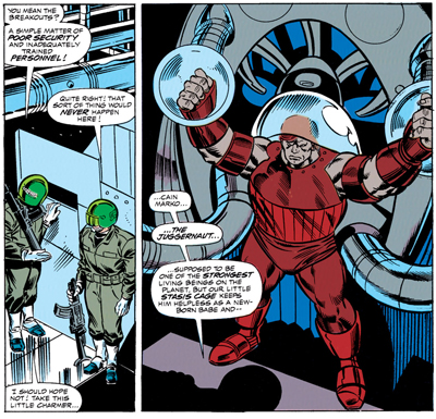 In fact, that really cuts to the heart of one of the major problems with Acts of Vengeance, reading it all together in one collected edition. It seems quite clear that many writers didn’t like having to shoe-horn in strange new bad guys into their planned story arcs. “I’m sick of being attacked for no reason at all!” Michelinie’s Peter Parker remarks at one point, perhaps expressing his author’s discontent with having to bow to editorial mandate. In one wonderfully silly moment, Loki pits the Juggernaut against Thor. The character openly acknowledges that he has no idea what’s going on or why. “This is great!! Don’t know how I got here! Don’t really care!”