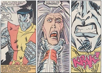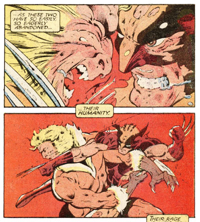And Claremont does drive out change from the event. Even as we read it, we get a sense that the characters are undergoing serious effects. This isn’t something that they will just shake off – this is a grand transformative experience for the team. As Callisto remarks, “Life — for Morlocks and X-Men both — will never be the same!” And it’s to the credit of Claremont as a writer that it doesn’t sound like hyperbole. Magneto calls it “a war” and perhaps he’s right, and there are casualties. The series turns Colossus, the youngest of the “all-new, all-different!” X-Men, into a killer. It has Wolverine strike out on his own. Storm has a crisis of conscience and doubts herself as a leader. I’ll be the first to concede that Claremont is the king of comic book soap opera, but he handles a lot of it with considerable gravitas, only occasionally veering into purple prose.