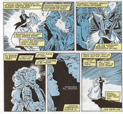 2. The whole Madelyne Pryor/Jean Grey/Phoenix story rap-up is only half of the story. Equally as important was the wrap-up of Magik storyline- he corruption and redemption of Illyana. I think the bleeding over of two very disparate story lines in the effort to resolve them both is admirable, even if it got to be very weird at times.