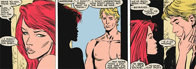 Part of the problem is the fact that Madelyne is inherently less interesting than Jean. She has always been defined as a copy or substitute for Jean Grey, and was only lightly sketched as a character in her own right. She seemed to only ever exist to develop Scott rather than as a character with her own identity. As relatively useless as she was before Jean Grey was resurrected, she felt completely redundant once the “real” Jean Grey was written out. It’s extremely obvious from early in the crossover that the purpose of the book is essentially to remove Madelyne from the equation so that Scott can get back together with Jean. It makes any development that Madelyne receives seem especially pointless.