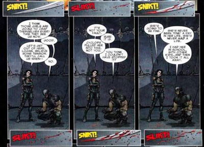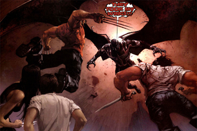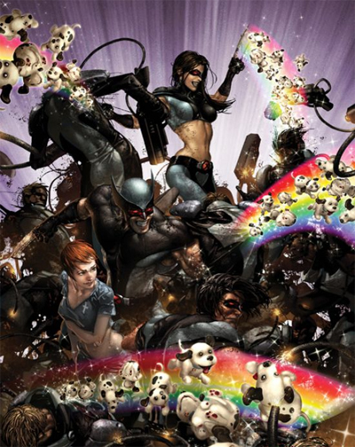 It’s a shame that the pair’s work on the X-Men books is confined to miniseries and New X-Men and X-Force, but such is the way of the world. I have to admit, I mostly enjoyed their work on the book, despite my initial skepticism about the concept. Indeed, the notion of the greatest “trackers and killers” in the X-Men branching off to form a proactive assassination strike force just sounds like “darker and edgier” has been stretched to the realm of self-parody. The covers and (to a lesser extent) the interior art don’t help disprove that observation, as it seems there are absurdly sharp blades and bloody slices every other page. Hell, this was the series that mocked its own excessive blood lust by proposing an all-ages friendly “puppies and rainbows” cover.