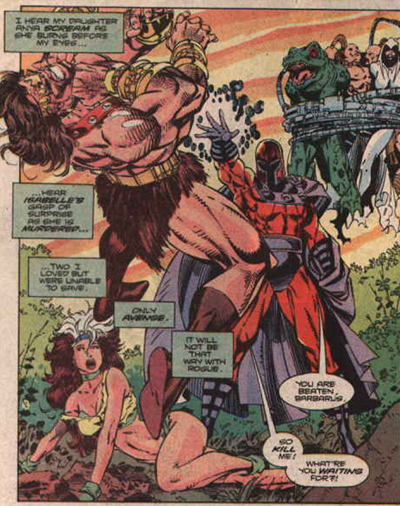 Still, there is some hope. As much as Claremont reverts Magneto, he takes care to point out that the world is changing in good ways, too. He allows his mutants to return to Genosha, the metaphor for South Africa that they visited in X-Tinction Agenda. It is now a free country, safe for mutants. “You should know, Rogue,” Anderson suggests, “since you X-Men helped bring that about.” Of course, this arguably makes Magneto’s turn all the more tragic, as Beast notes: “They’ve changed — for the better! Why is it you’re going the other direction?”