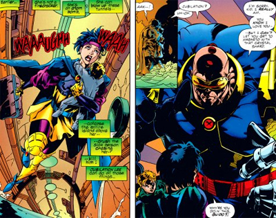 This is, after all, a young man who gets caught up in bar fights and comments on his own difficulty with medical ethics. “But ethical doctors don’t fall in love with their patients,” he suggests. I’ve always felt that Charles Xavier was the least developed and most interesting member of the X-Men ensemble, and Lobdell actually writes a solid younger version of Charles. Even in the alternate timeline books, Lobdell is in surprisingly solid form. In fact, all the writers are.