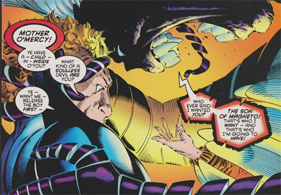 One of the better aspects of Age of Apocalypse is the fact that it allows the writers to play with characters they wouldn’t normally have access to. Characters play major roles here, despite being long dead in regular continuity. So there’s something almost exotic about seeing the writers handle old mutants like Sunfire or Blink or even Morph, as these veteran mutants are afforded a rare moment or two in the sun. All these are advantages that come from being free of continuity.