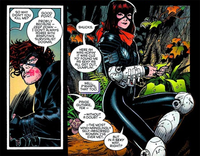 There is something inherently fascinating about seeing familiar archetypes filtered through a new lens, to play that conceptual “what if” game with familiar and iconic characters. There’s something fascinating about seeing writers warp characters, to see how they may have ended up had things gone a little bit different. Some change radically. The series suggests the affable Hank McCoy as a cold-blooded Dr. Mengele. It throws out the idea of Sabretooth as a hero (an anti-hero with “a lot to atone for”, filling Wolverine’s place on the team). It offers us Colossus and his “survivalist dogma.” His sister muses, “I haveta say I don’t remember my brother as being so… mean.”